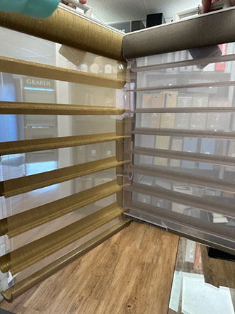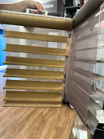 Below is an example of the Hunter Douglas Silhouette window treatments, opened and closed.